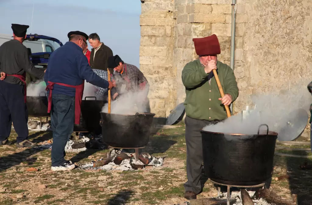 La peregrinación de la Rogativa de Catí a Sant Pere de Castellfort tiene muchos otros elementos singulares, además de la vestimenta tradicional y los cánticos religiosos. Lo mismo sucede con la gastronomía tradicional donde no falta el queso fresco de Catí, el agua del Avellà, el requesón, la miel, el aguardiente, el moscatel … Se trata, en todos los casos, de alimentos anteriores al descubrimiento de América y destaca la ausencia de carne.